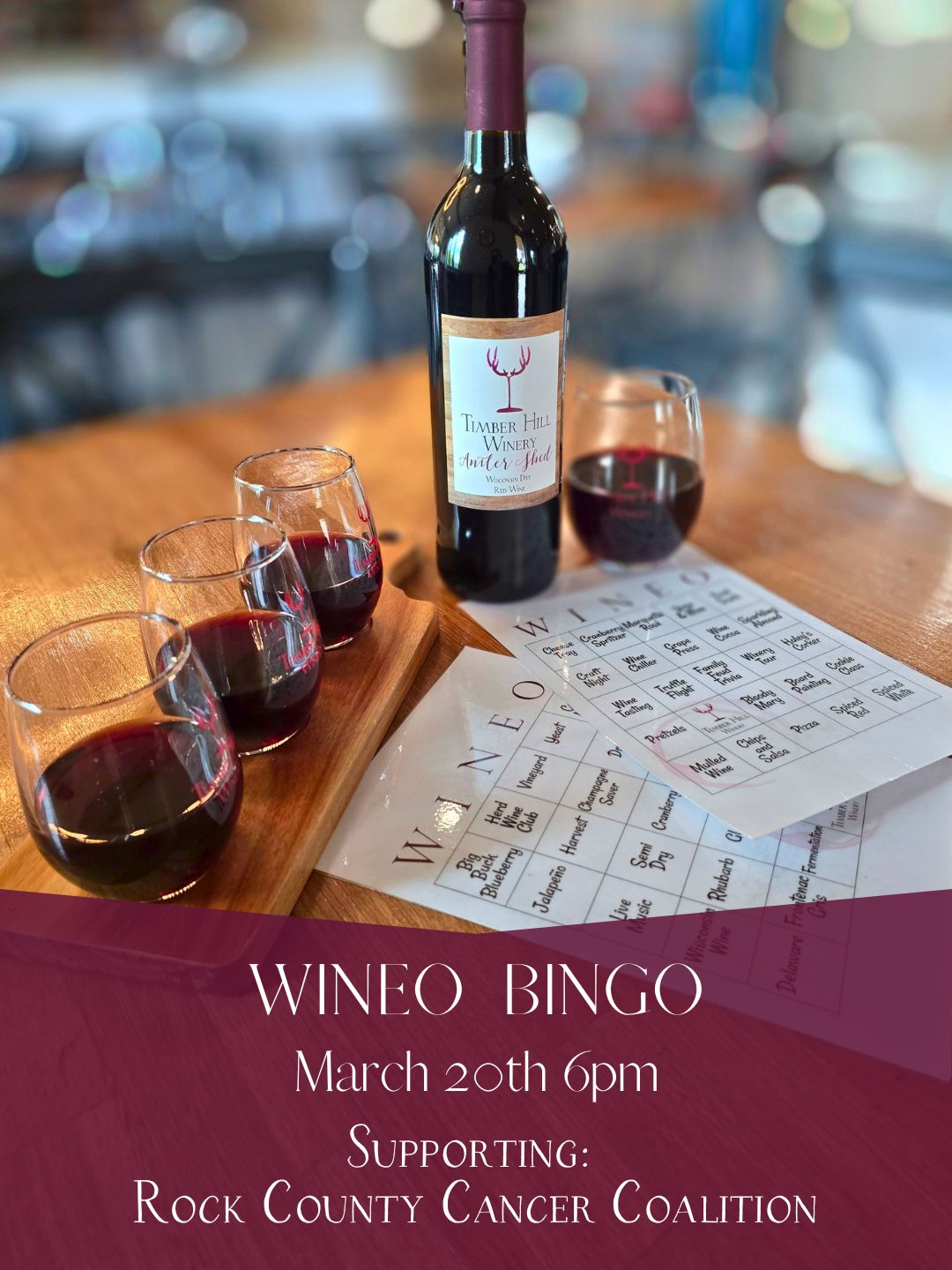 Get ready to sip, play, and shout WINEO! at the first sight of Bingo. The best part? Proceeds benefit Rock County Cancer Coalition. Bingo calling starts at 6:00 PM and wraps up at 7:00 PM, so come early, grab a glass, and get ready for a fun-filled evening for a great cause.