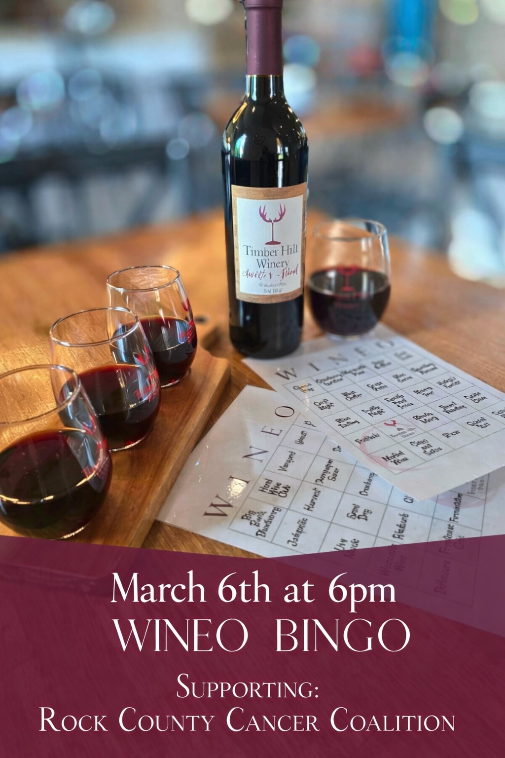 Get ready to sip, play, and shout WINEO! at the first sight of Bingo. The best part? Proceeds benefit Rock County Cancer Coalition. Bingo calling starts at 6:00 PM and wraps up at 7:00 PM, so come early, grab a glass, and get ready for a fun-filled evening for a great cause.